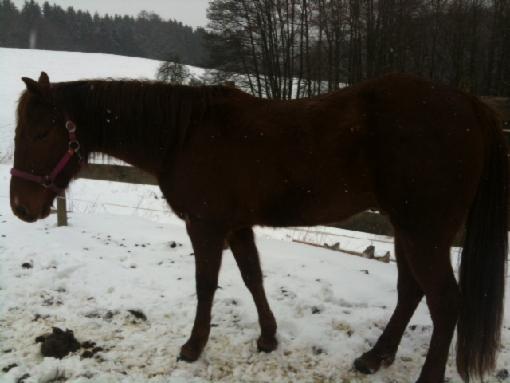 und last but least - unsere "kleine" Lady. Direkt vom Schlachttransport zu uns, und seitdem in "Wiederaufpäppelungskur" - nie mehr reitbar, aber dennoch in Lebensstellung...